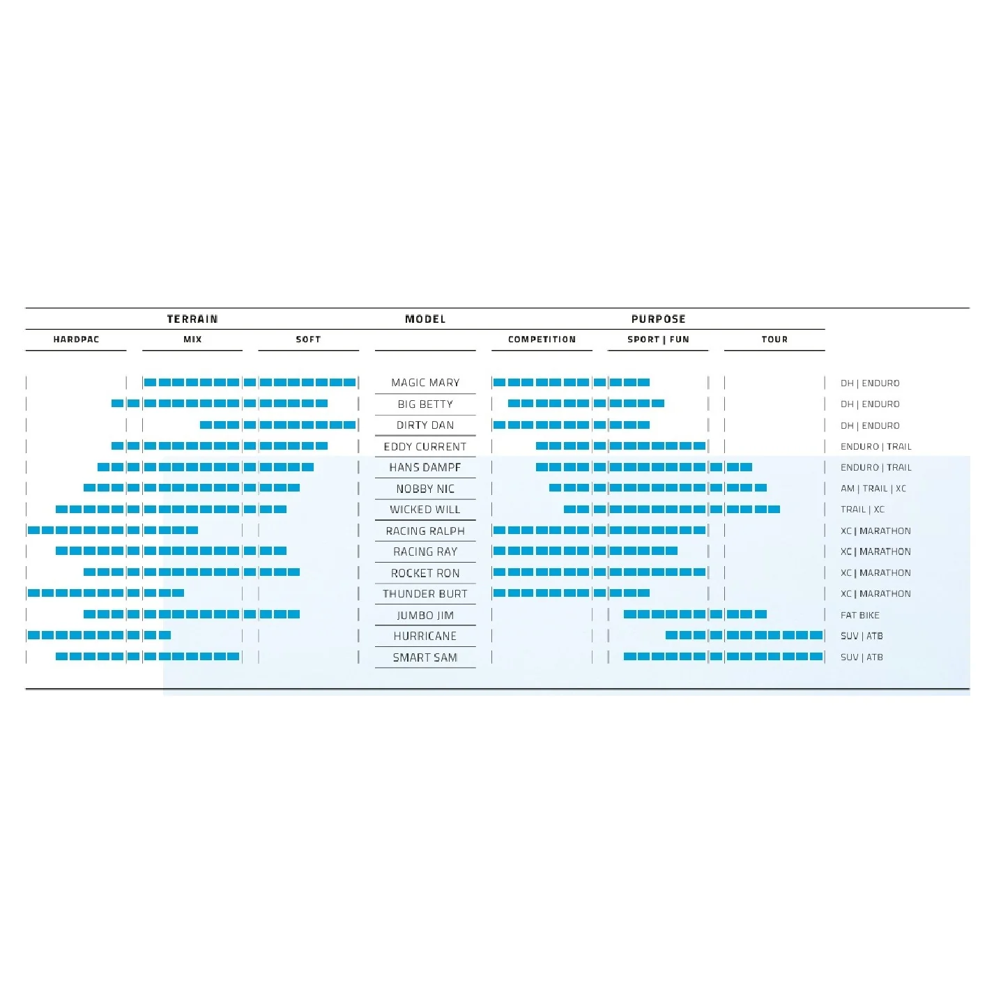 Su perfil garantiza un excelente equilibrio y se adapta a todas las situaciones, tanto en terrenos difíciles como en senderos individuales. Este neumático ofrece una manejabilidad impresionante y una protección antipinchazos de primera clase. Este modelo también está equipado con goma Addix Soft con excelentes propiedades de rodadura y amortiguación.